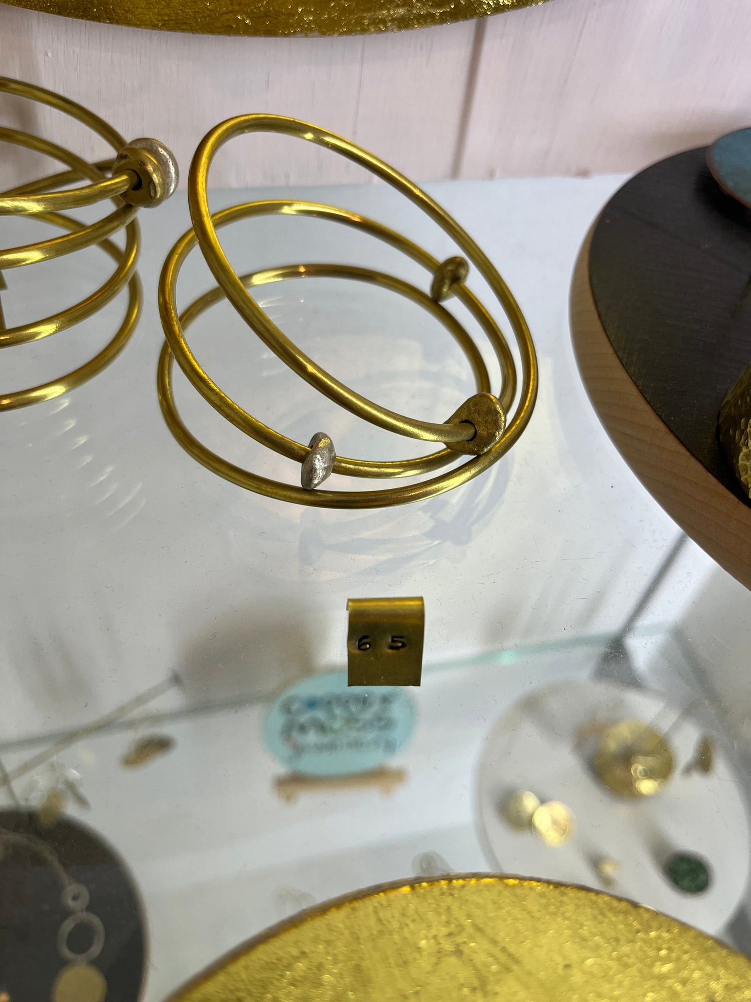 Copper Moss 3 twist orbit brass bangle with recycled silver and brass beads